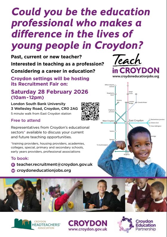 Croydon is London’s largest borough by population and has nearly 150 schools and colleges to serve this community. This website is owned and operated by Croydon’s Headteachers – giving applicants direct access to school jobs in our borough without any ‘middle men’. If you want to teach in Croydon or work in a Croydon school we’d love to hear from you.
